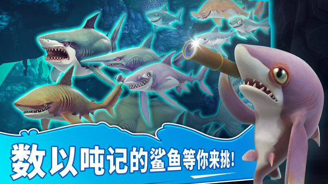 2、多种不同的鲨鱼体验,遵守弱肉强食的自然法则,吞噬一切比自己小的鲨鱼。