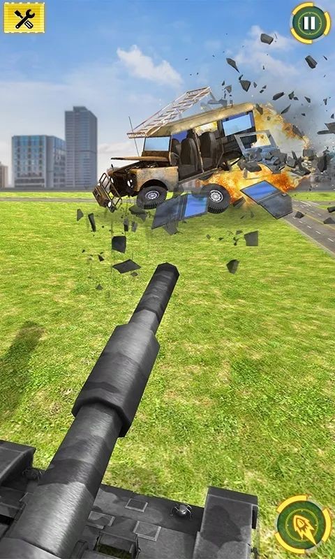 3、将各种各样的建筑物摧毁,惊人的破坏力量,一炮射击后,碎片到处飞舞。