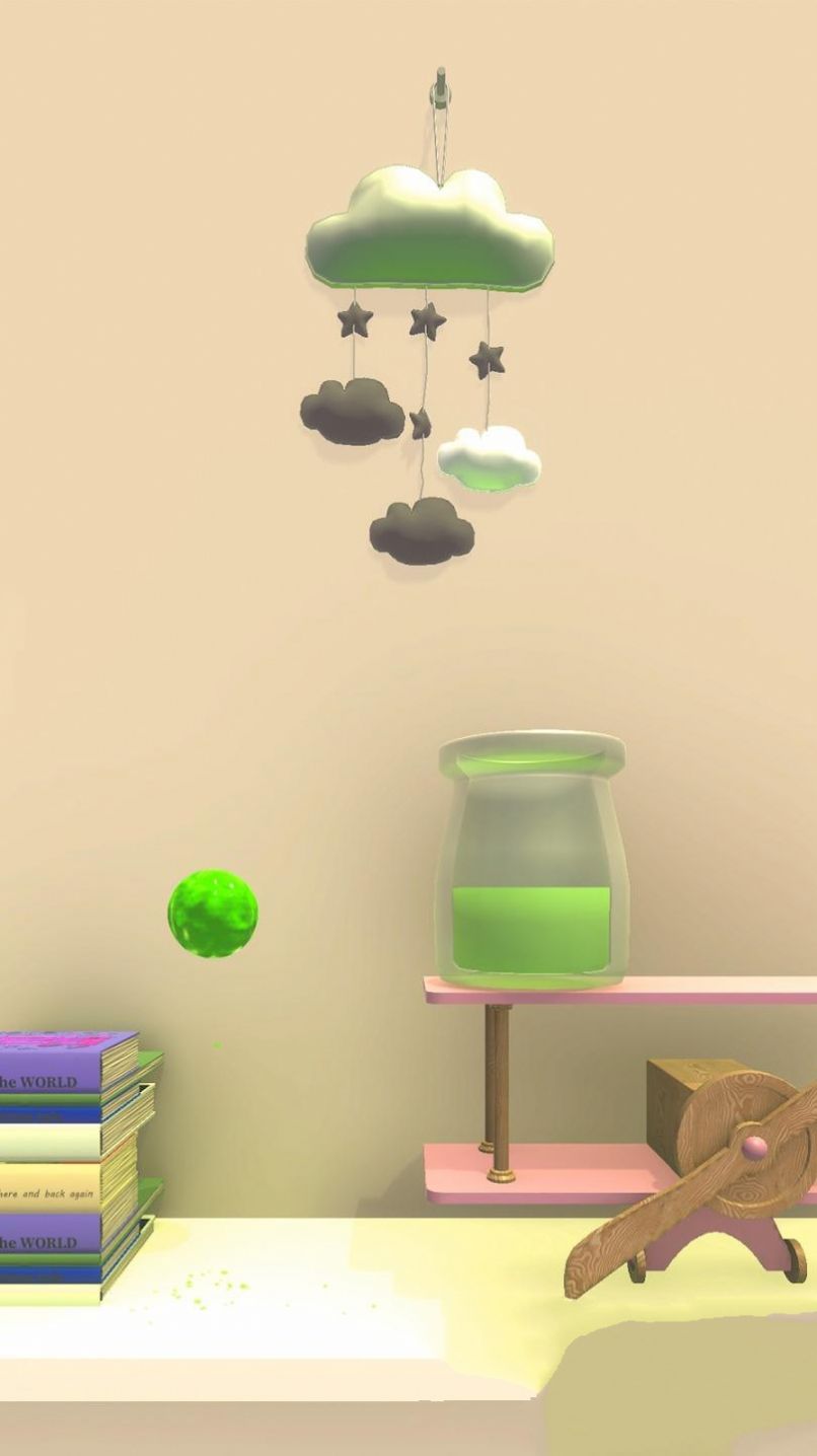 3、充满童趣和童话般的绘画,非常有弹性的史莱姆,将史莱姆投掷到瓶子中游泳吧!