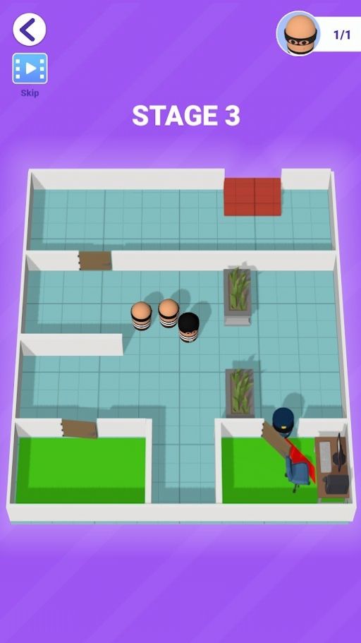 3、简单操作技巧,只需要带领你的小偷转转转,就可以轻松获得胜利。顺利通关哦。