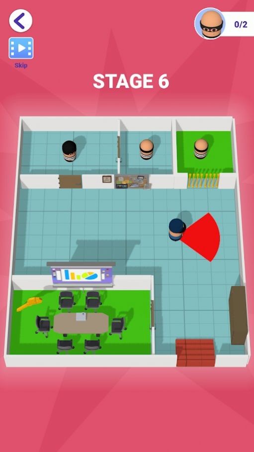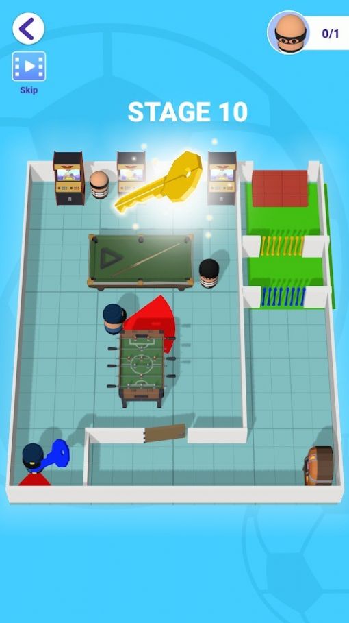 1、滑动屏幕控制小偷,找到钥匙,拯救队友,不要被发现,毕竟你可是职业小偷。