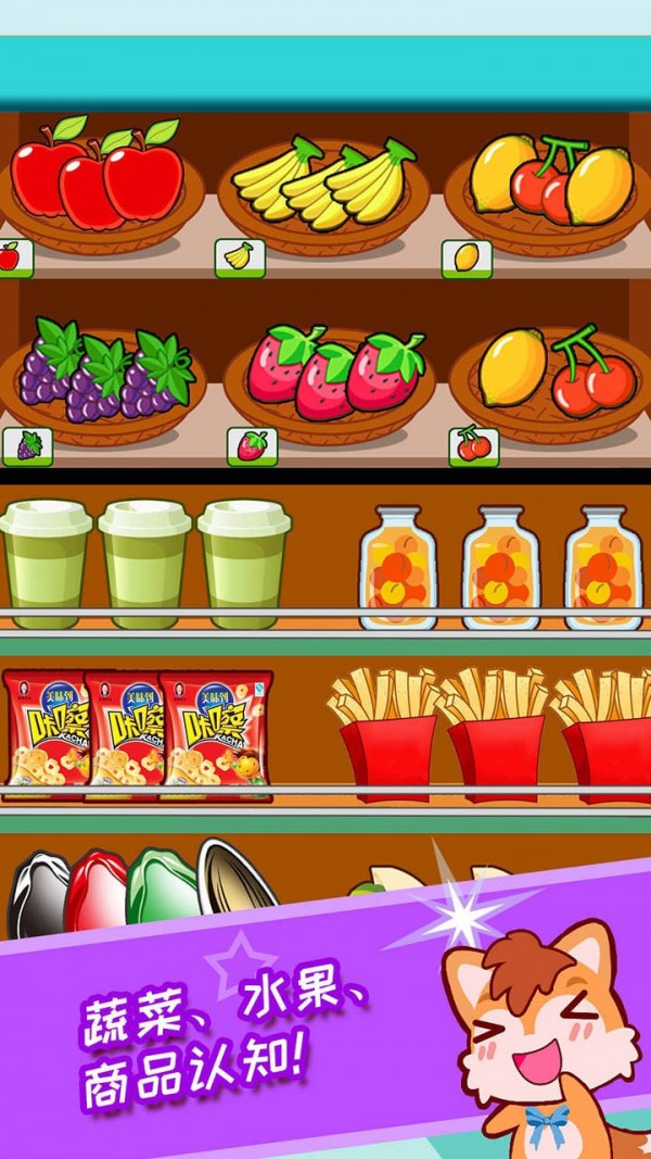 宝宝开心超市免费版通过模拟经营的方式,帮助小朋友们更好的认识各种商品,正确引导他们。