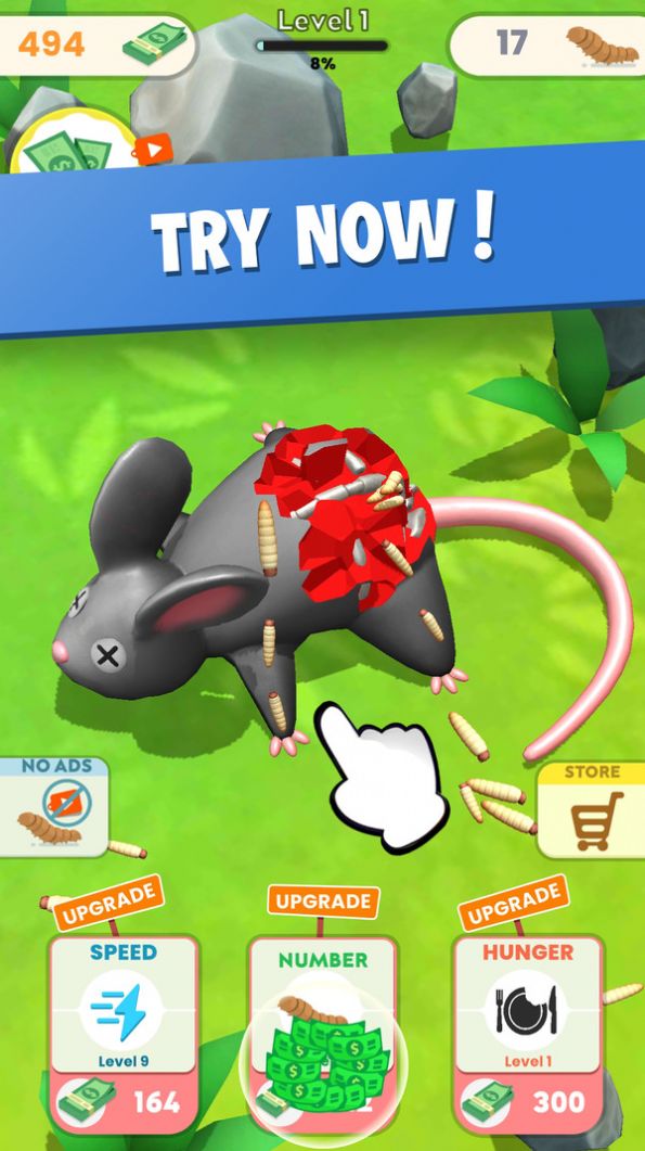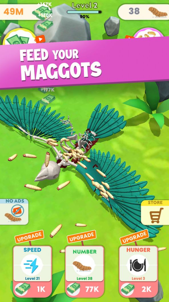 养蛆模拟器是一款寻找食物是你一直在做的事情。卡通风格的画质效果看起来并没有你想象的那么恶心,就像一只小昆虫。找到一些动物的尸体。它们是蛆虫的温床。开始直接在这些动物身上饲养蛆。他们可以通过收集各种能量并用各种食物解锁它们来快速进化。动物的尸体是你最喜欢的东西。