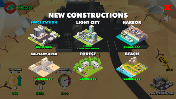 3、而现在你也将会驾驶着自己的爱车们,去进行一次次的建筑任务!