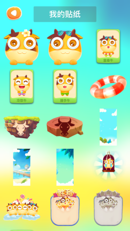 3、贴纸收藏中有部分游戏中的美术资源,可分享到Message、Email等平台。
