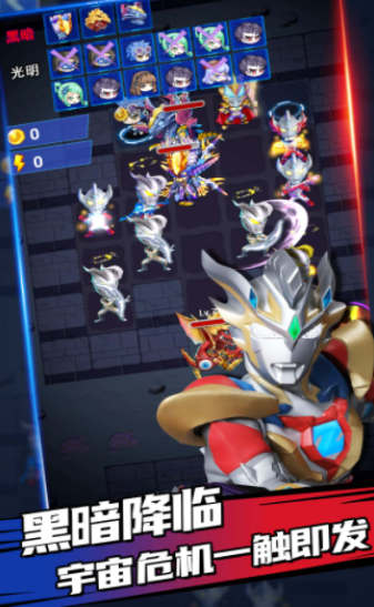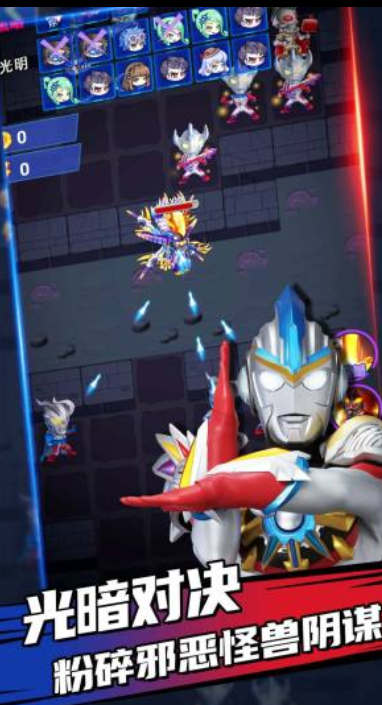 1、众多属性的奥特曼英雄提供玩家选择,来和强大的怪兽进行塔塔开;