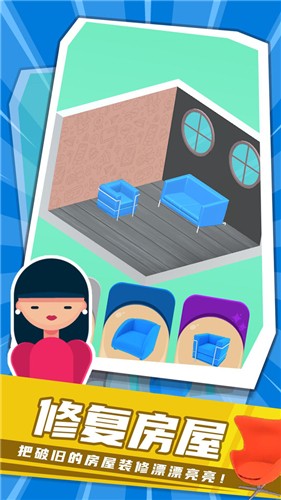 装修猛男是一款玩法简单的房屋装修游戏,用你的双手不断的进行各种各样的房屋设计,使它们的形象变得更加的特别,随时加入到这些挑战之中,体验到多样玩法下的乐趣,将你很好的代入其中,尝试着多样挑战,使这些房屋变得更好看。