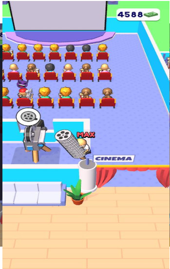 3、当你在游戏中赚取了许多的收益是你可以扩大你的电影院和招聘更多的服务员,解锁更多的区域,吸引更多的客人;