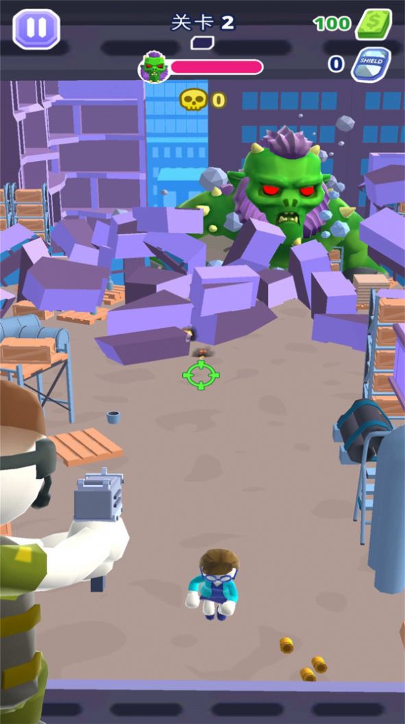2、随意滑动屏幕瞄准巨兽射击,保护城市就能获胜,解锁武器。