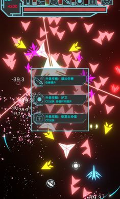 霓虹空战游戏是一款趣味的飞行射击游戏,游戏中玩家驾驶飞机发射轰炸其他的红色飞机,红色的飞机数量多,玩家孤军奋战,将红色飞机击毁散落成一大片的霓虹光,彩色的在暗黑的天空中格外的明显。