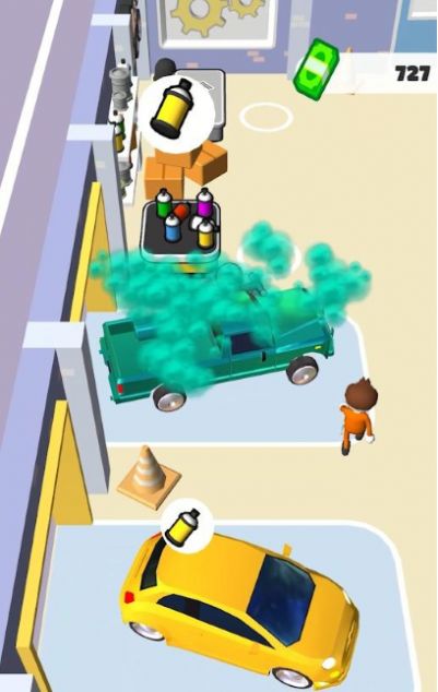 2、根据开进来的汽车需求,更换轮胎等操作,完成维修获得奖励,再扩建工作室;