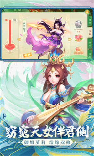 3、完成独创的天女系统,可以让玩家任意的挑选各种萝莉和御姐,使用不同的合体特技,与别人双修练级。