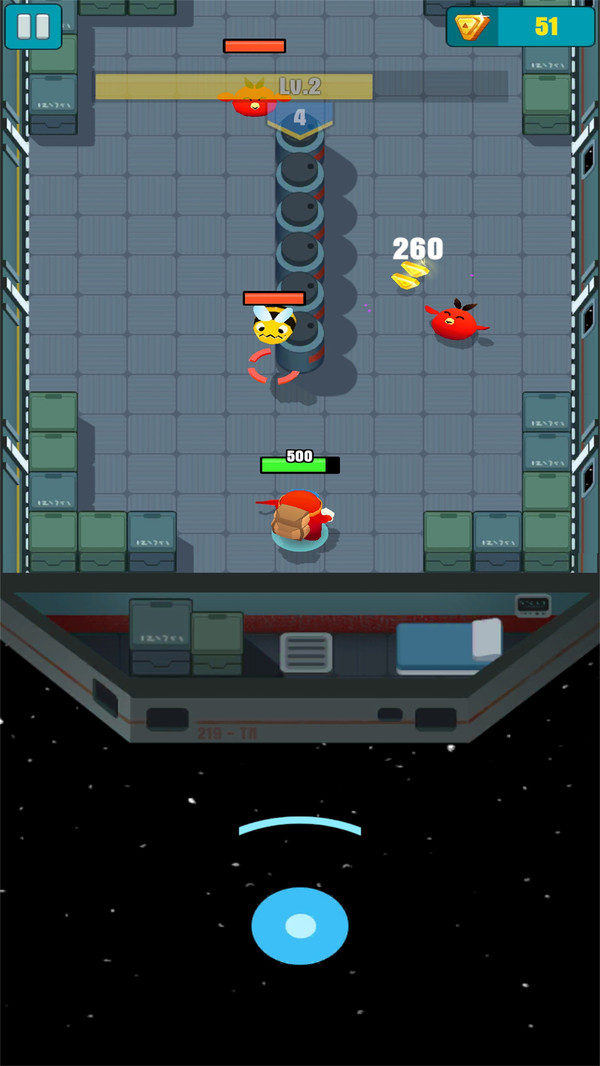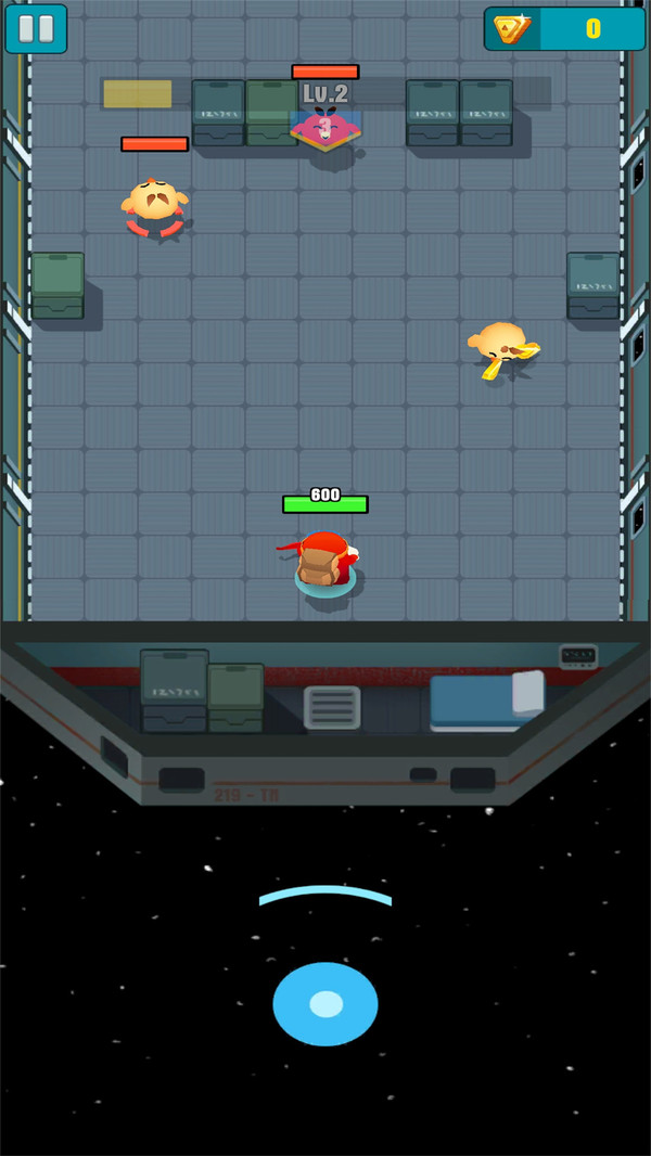3、用操纵杆移动,进入下一个房间,绕过障碍物,击败敌人。