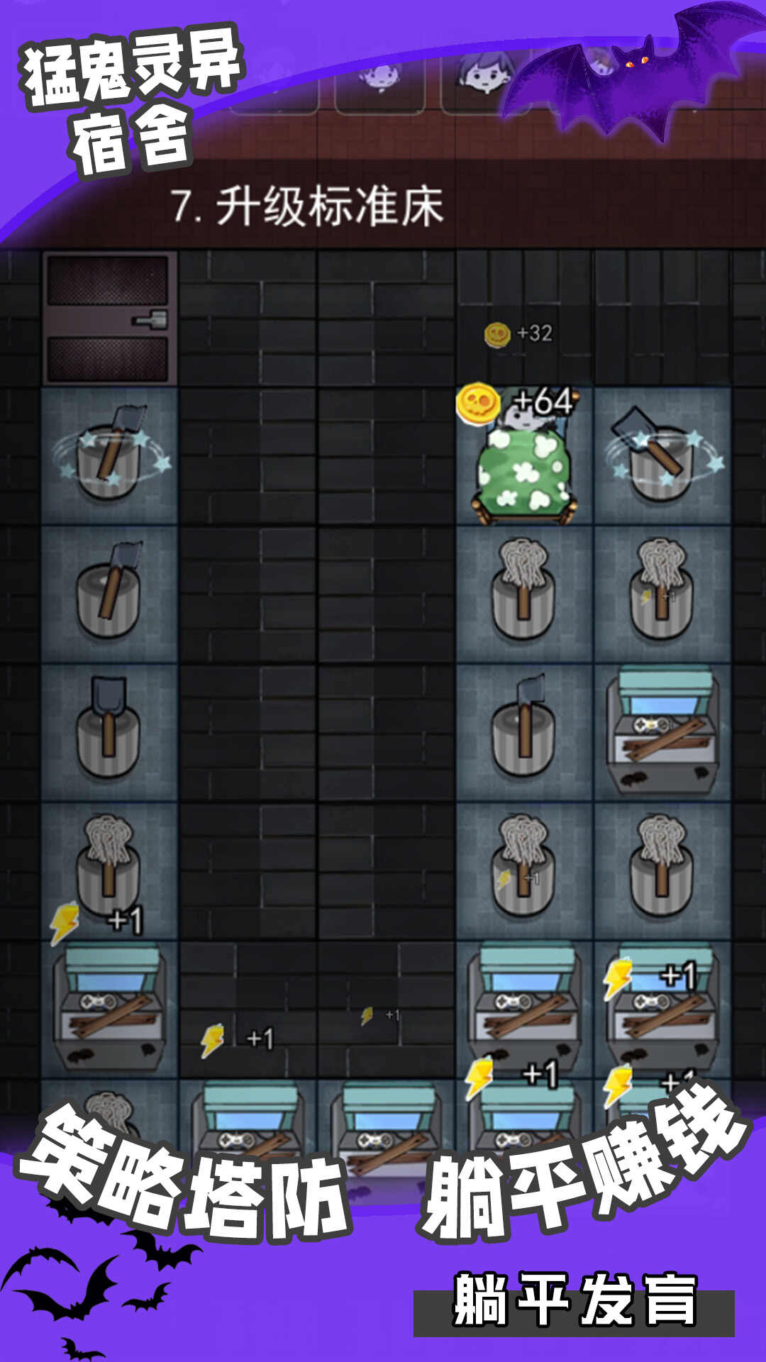猛鬼灵异宿舍游戏是一款增加了猛鬼元素的塔防游戏,恐怖的游戏画风,轻松おもしろい塔防射击挑战,你将在这里选择合适的宿舍进行躺平,躺平的过程中会有精彩的塔防射击玩法,积极的参与进来,躲避更多的危险情况,积极的参与到游戏中,射击猛鬼,努力活下来。