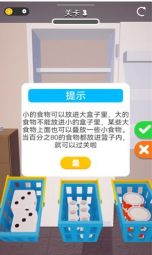 4、游戏操作非常的简单,只需要把东西合理的放在冰箱里面就能完成操作,给你带来轻松的体验。