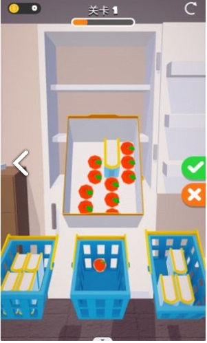 2、每一个的关卡都会有杂乱的食物以及其他食材,需要玩家的细心整理,按照食物的大小分类;