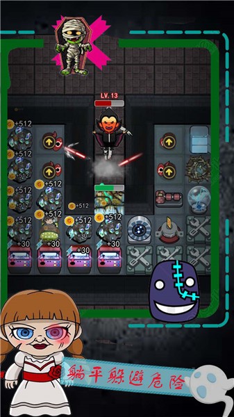 2、多种多样的有趣的模式,过程中玩家可以完成大门的升级和炮塔建设来防御猛鬼。