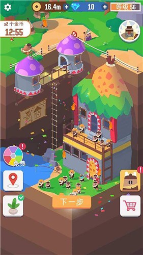 1、精致的手游风格,流畅刺激的冒险玩法,各种不同的道具可供选择,让你可以开始你的挖掘挑战。