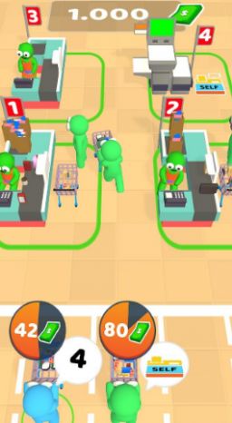 游戏中会有很多的收银台,需要大量的收银员来帮忙。每个客户的需求是不同的。只有尽可能的服务所有的客户,每天完成不同的任务,才能有更多的收入。