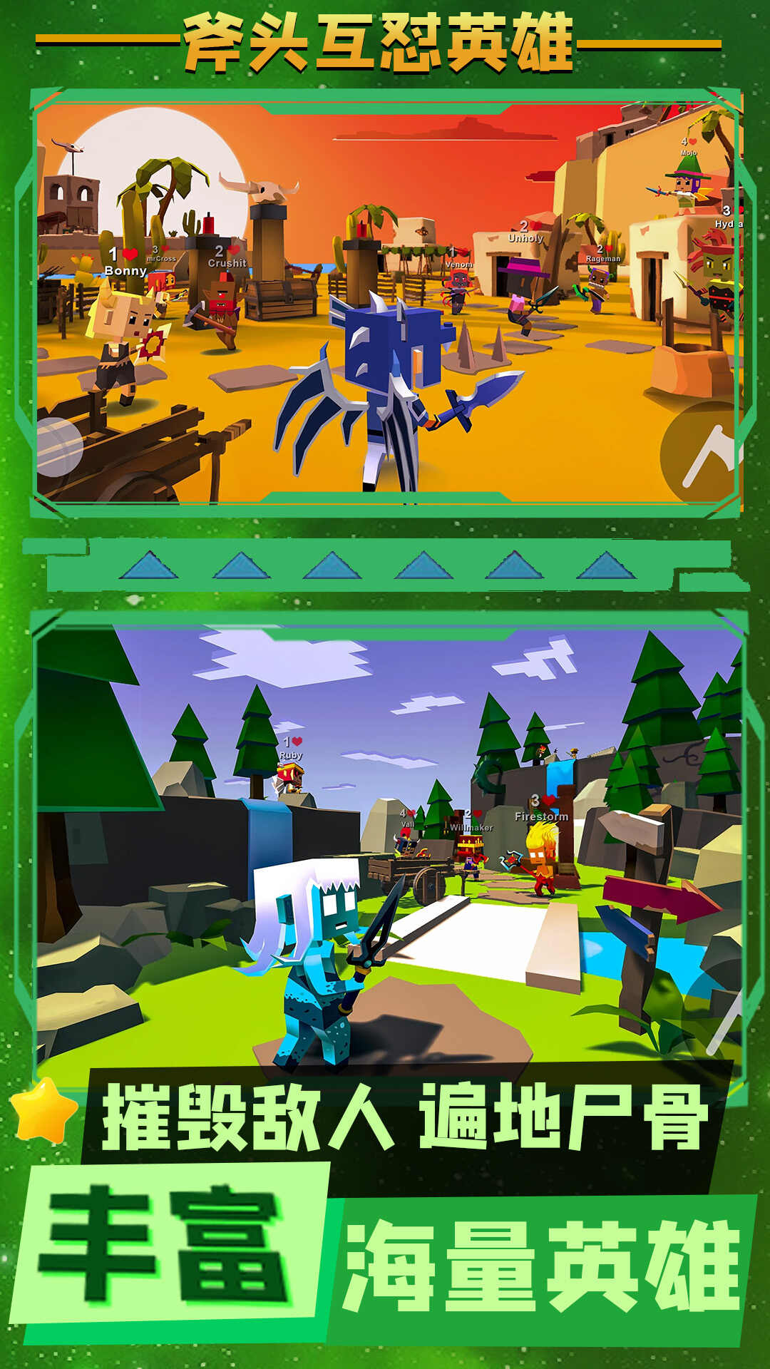 斧头互怼英雄正版是一款运用冷兵器吃鸡的竞技游戏,在这款游戏中,玩家需要尽可能的存活,时间越久,所获得的资源道具也就会越多,当然,超多的玩家来争夺唯一的胜利资格,战斗会十分的激烈刺激,所以玩家需要随时做好战斗准备。