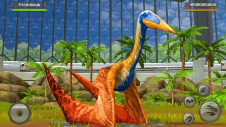 手游中用户将控制获得飞行能力的恐龙,与各类不同类型的恐龙进行对战,挑战比自己强大的恐龙,战胜它们获取更多的生存资源。