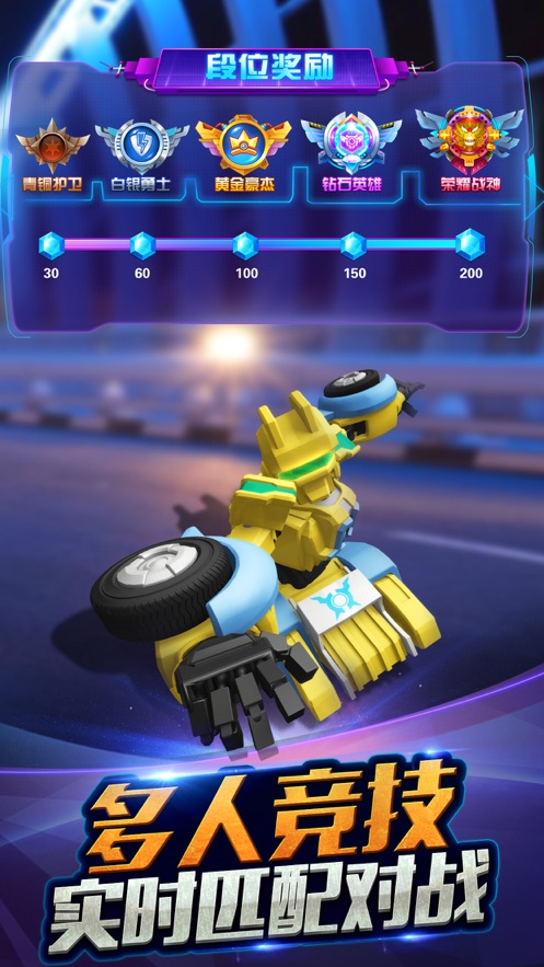 跳跃战士之急速跃变一款机甲动作手游,选择一台你心仪的跳跃战士机甲,战士可以随意变身,霸气装备炫酷武器翅膀,多人竞技实时匹配对战;丰富玩法拥有多种趣味模式,真实还原动漫场景和各种战车,体验真正的竞技乐趣!
