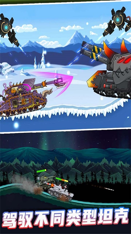 1、解锁不同威力的坦克,攻克关卡,达成战场之王成就。