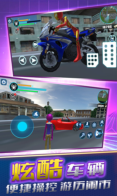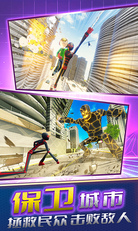 城市蜘蛛绳索英雄游戏是一款玩起来超级刺激的英雄扮演类型手游,在这座城市之中与邪恶势力开启激情对战,击败所有的敌人,让你自己的威名响彻全世界,更加浓厚的卡通气息,视觉上观感很棒,能让更多玩家获得更棒沉浸感受啦!
