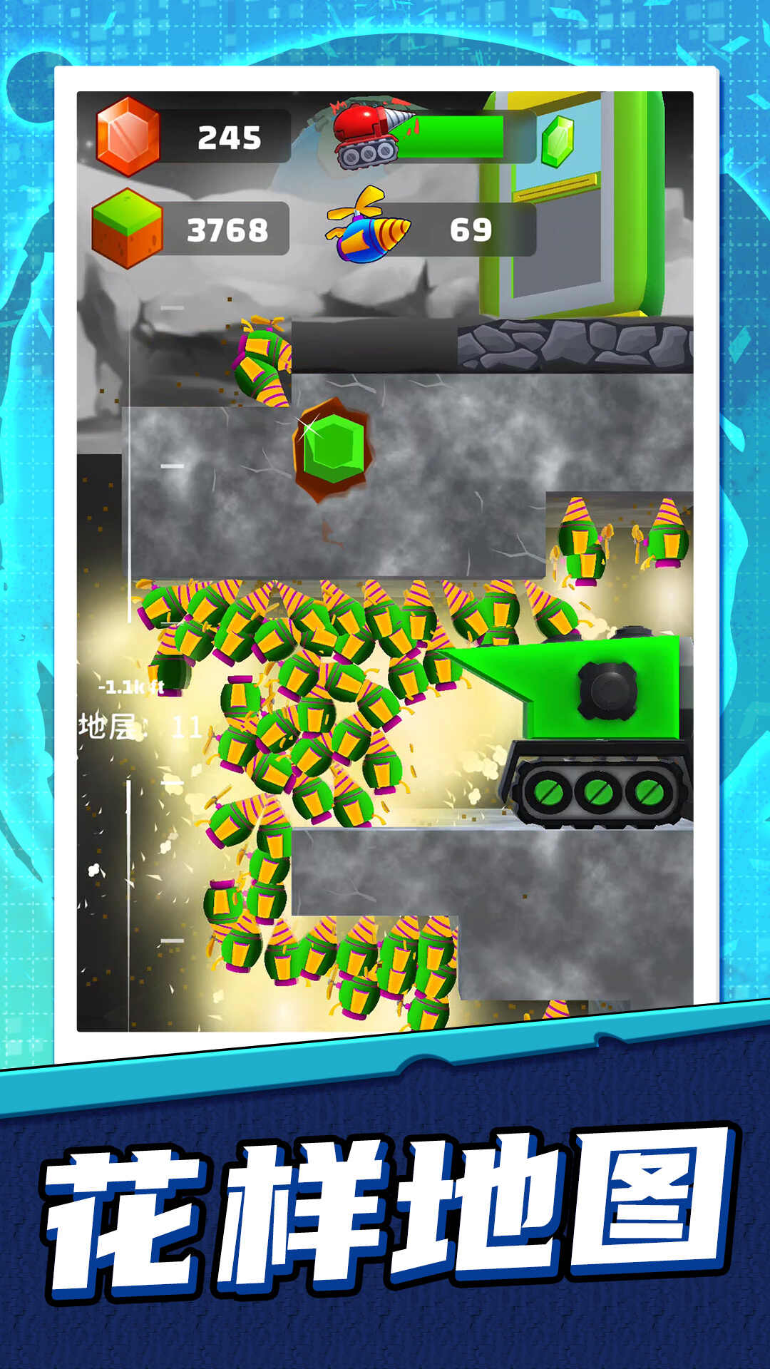 3、用了可带的卡通风格,仿真程度超高的矿石,让人有眼前一亮的感觉。