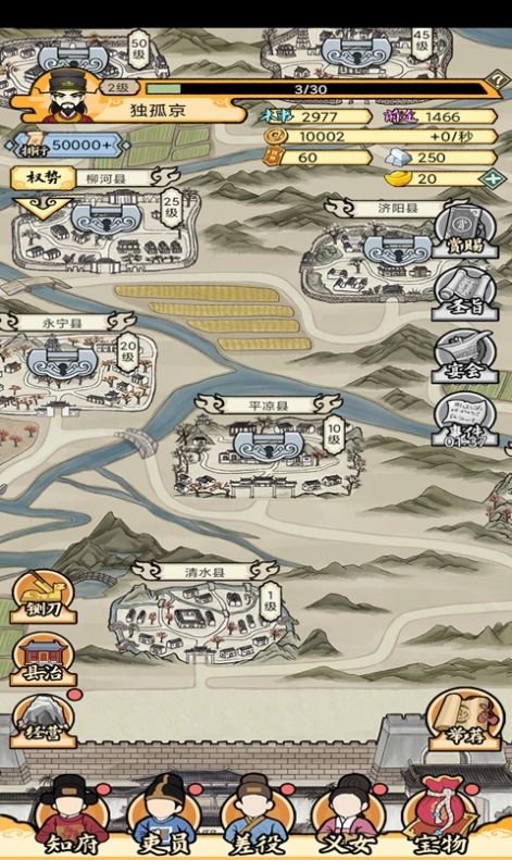 2、玩家们将穿越在中国古代中,化身一名知府官员,这里招募、管理、为自己的百姓谋取福利等等。