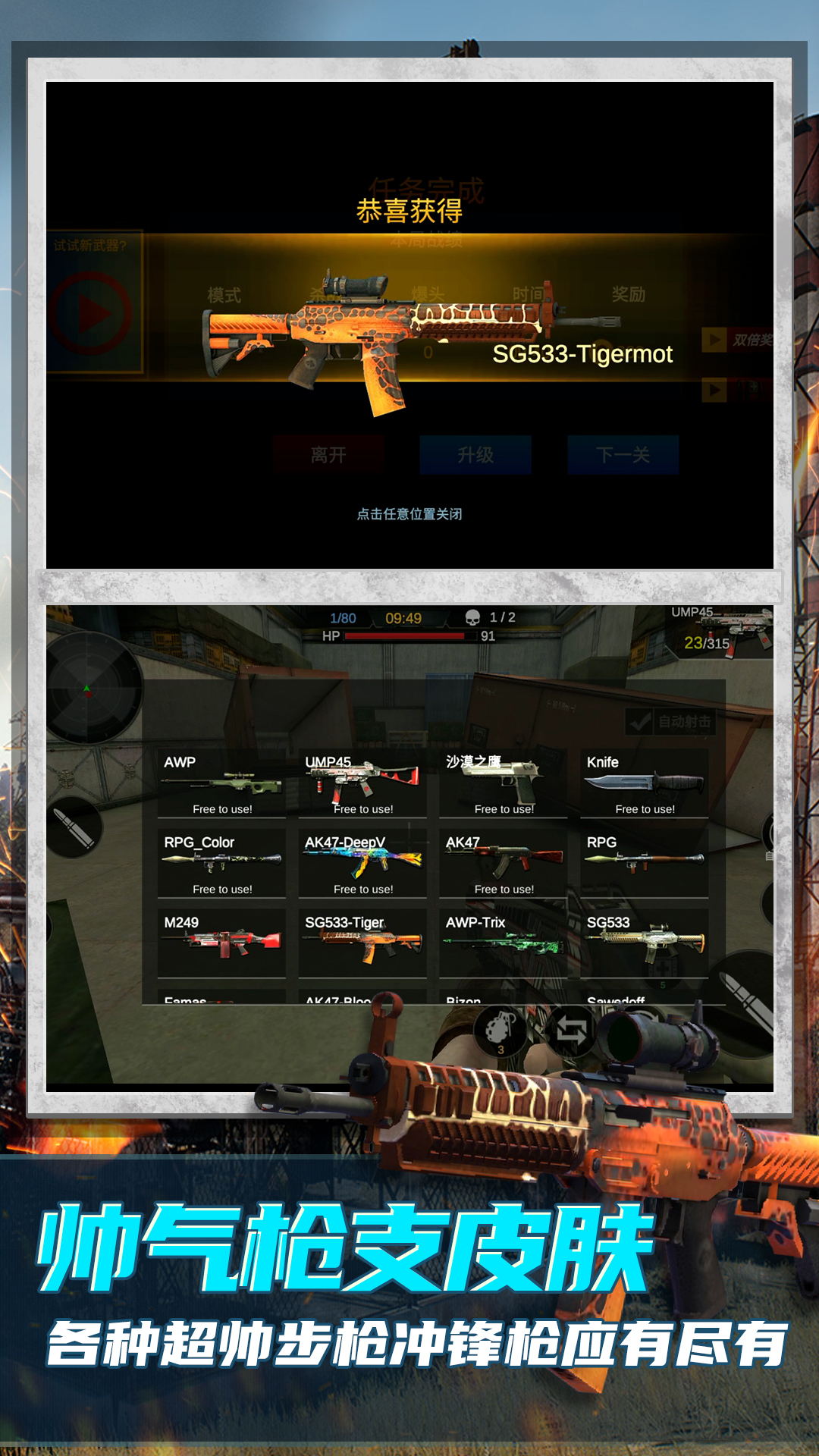1、精彩刺激的枪战射击游戏,诸多任务,尽情挑战;