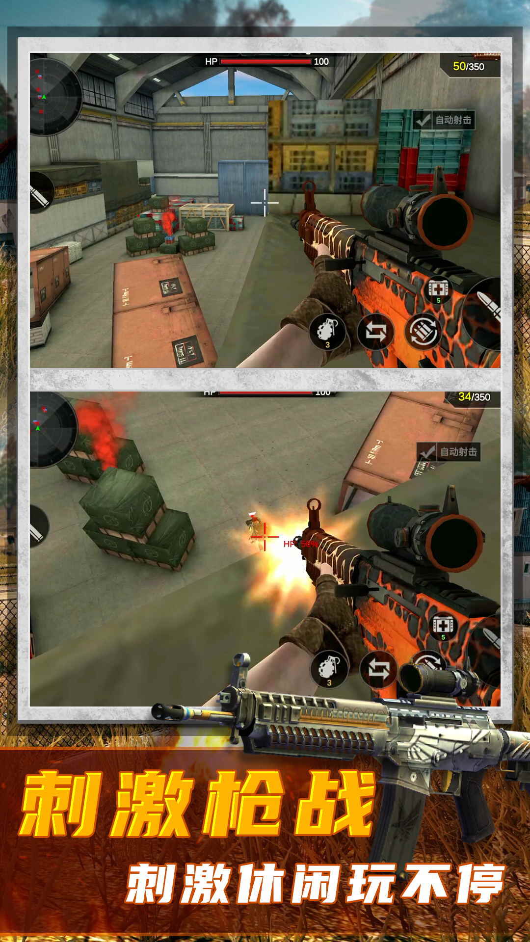 3、敌人太多了,枪战还在继续中。让我们在游戏里英勇作战,消灭敌人,赢得最终的胜利。