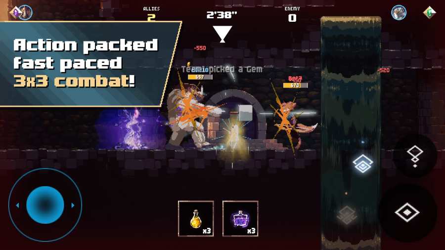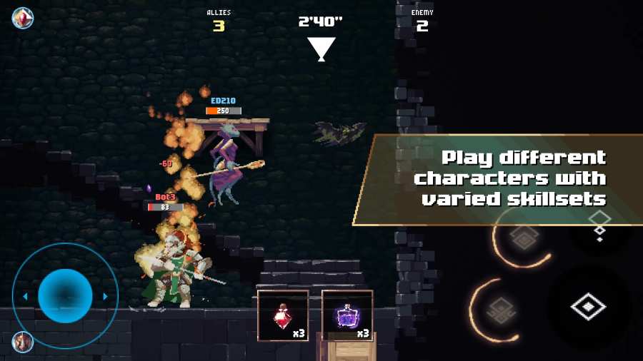 1、横版战斗极为经典,英雄可以在空中继续踩着兵器跳跃,使用多种操作到达新的地方;