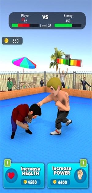 3、通过升级生命值以及拳头的力量速度和威力,还有攻击范围来提升角色的属性。