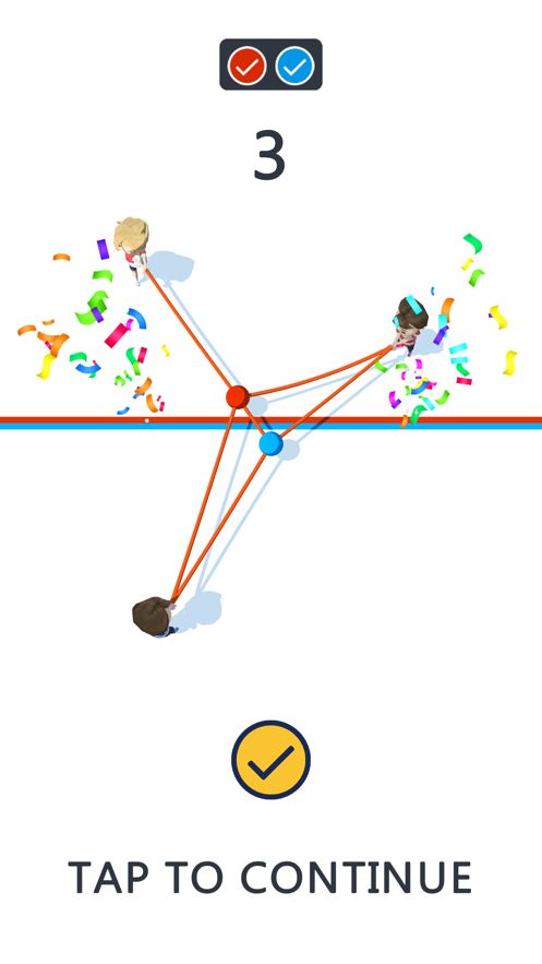 3、需要合理的运用自己的手段以及观察每一个小球,它对应的线条的颜色来进行拔河。