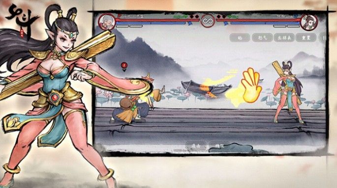 1、这款格斗游戏的画风非常的富有国风情怀,多种多样的招式设定,一套连击下来手感还是非常不错的。