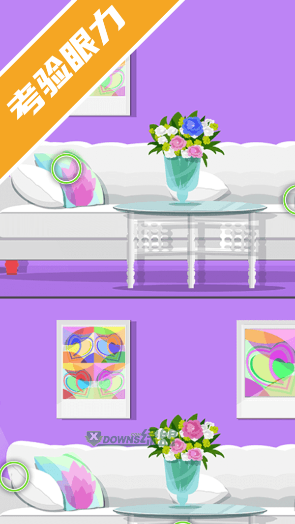 一起找茬是一种的休闲游戏,上手简单,只要把两幅图片中不相同的地方用手指单击找出即可,考验玩家的分析力观察力、适合不同性别不同年龄段的用户,是一款全民娱乐的游戏。