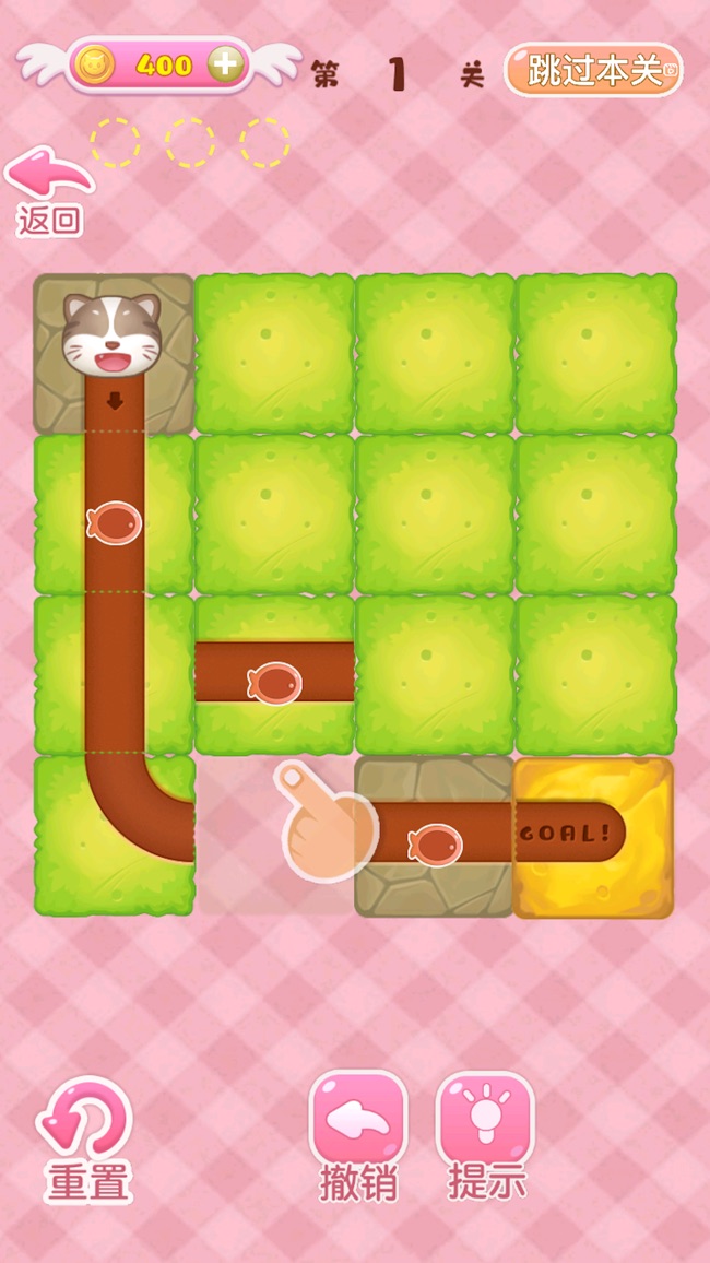 1.Q版可爱的游戏画风,帮助无助的大脸猫找到食物吧!