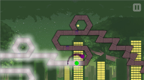 一款非常有创意也很有难度的快节奏音乐闯关游戏,有且一个按键去操作类似太极盘中的双星去不断前行冒险。你需要把握时机将双星有节奏的踏板前行,过程中不能有任何的失误,必须一步步的落在规定位置盘旋前进。游戏提供了多周目挑战、多个主题背景、不同背景音乐等你来,非常考验你的操作能力和反应力。