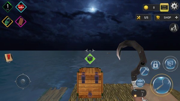 1、玩家可以升级制作的木筏,收集你进行逃生的物资;