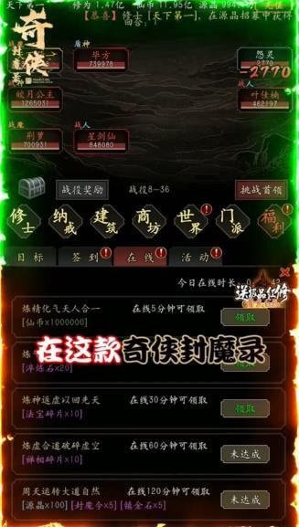 升级挂机,什么时候上线均有收益,体验游戏乐趣,而非捆绑你的时间!