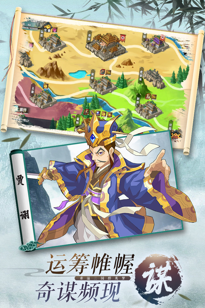 游戏以穿越为题材,以经典名著三国演义为背景,完美融合卡牌类游戏玩法;
