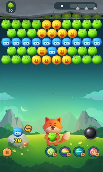 1、通过将3个以上相同颜色的泡泡射到一起来进行消除。游戏规则简单,消除即可得分;
