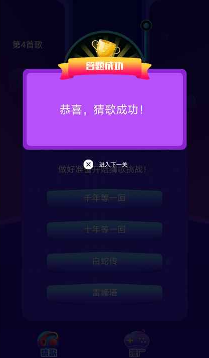 1、跟不同的对手竞技切磋,比一比谁对歌曲更加了解,前奏一出,能够快速答出歌名;