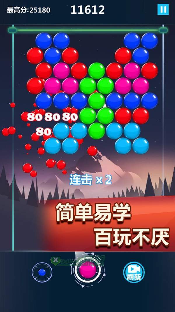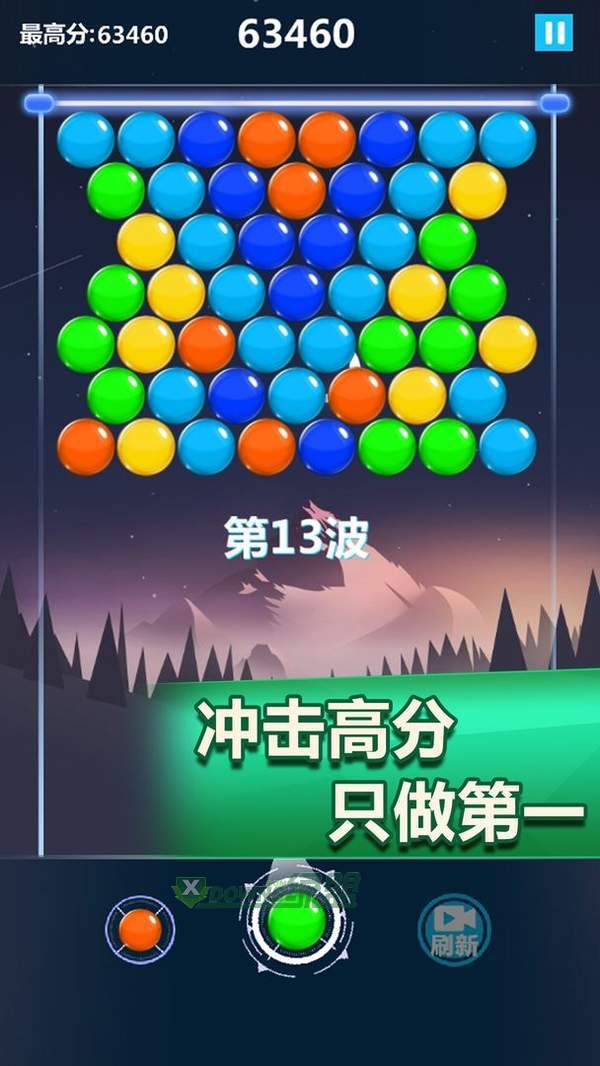 你的目标是在泡泡碰到底部前清除所有气泡