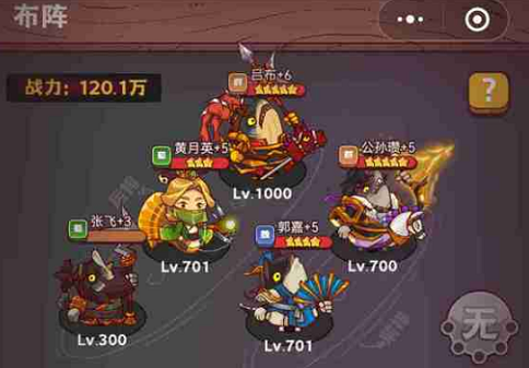 想要通过这一关,那么在搭配阵容的时候,可以使用1100级别的吕布搭配,上900级别的国家,还有900级别的太史慈,以及900级别的张飞和1318级别的司马懿。这个阵容能够很轻松的帮助玩家们度过这个关卡,在这个阵容里面司马懿吕布这两个卡牌,作为前锋把他们放在阵容的最前面。让国家作为辅助,帮助司马懿更好的进行进攻。张飞在这个阵容里面主要的职责就是守卫,把它放在阵容的侧面。
