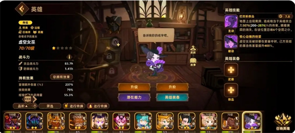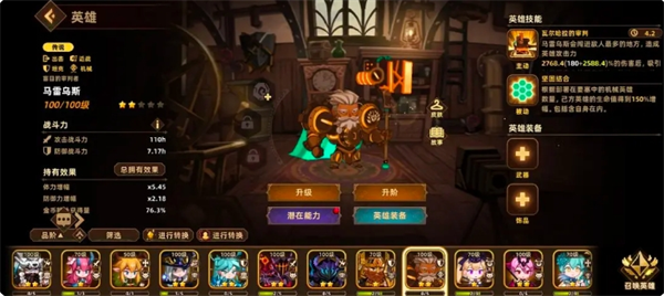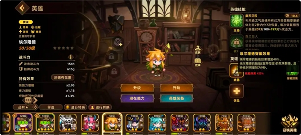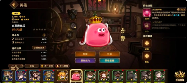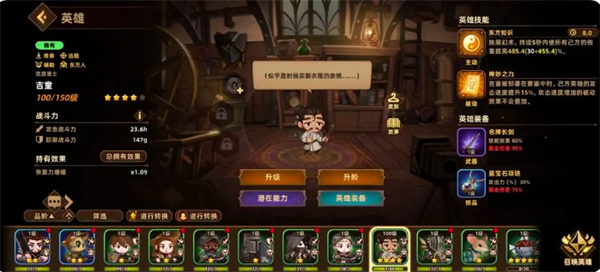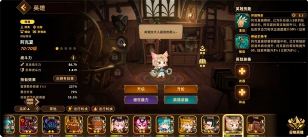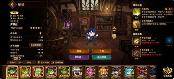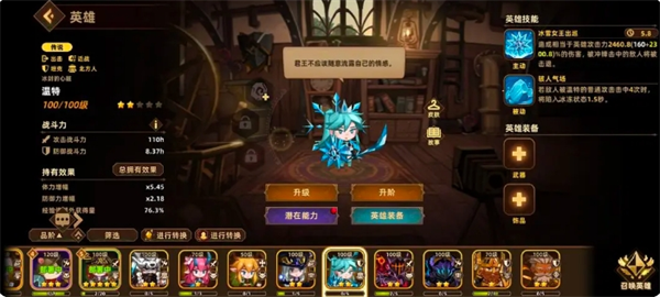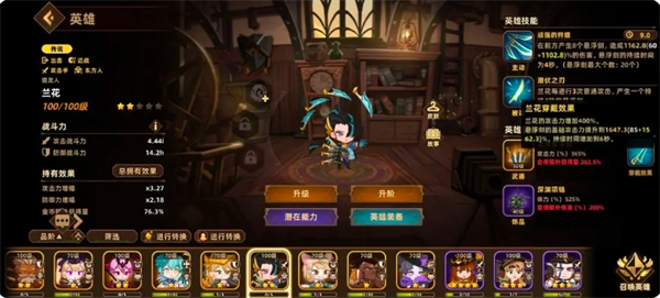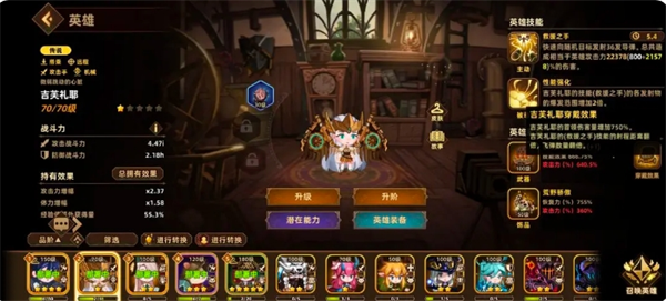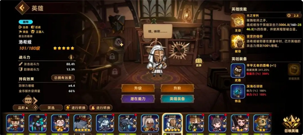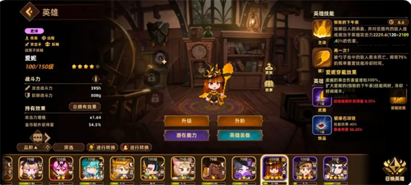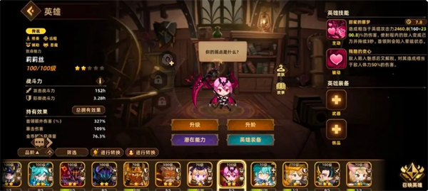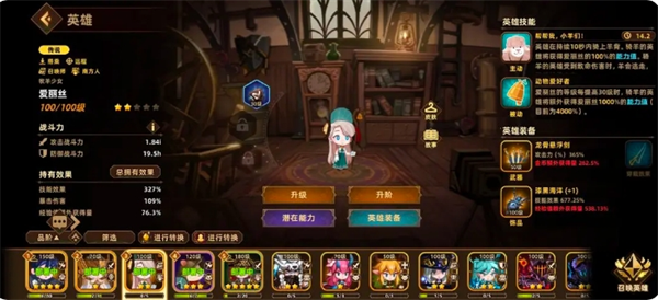 (前期的减cd被动并不实用,等到一定关卡【大概15关吧】开始配合爱丽丝特别实用,装备随意,等级不着急提升)