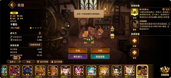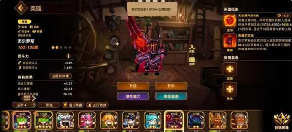 (PVP强势英雄,1星开始就很能抗,如果配合爱丽丝,埃尔隆德,基本一人抗住压力,注意他的专武让他的主动技能变废了,对群变切后排对单,打关卡可以打小怪换其他武器,打boss换回专武,打boss最好手动操作,比如骑羊状态下伤害加成很多)