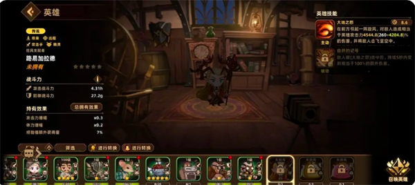 主角洛伊,暂时唯一的减全体技能冷却的被动,多阵容可上,绿色容易满星。
