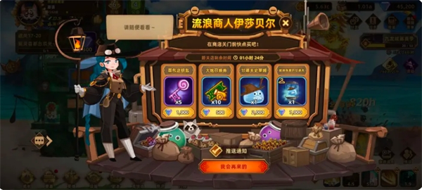 (流浪商人是每天固定时间随机地点出现固定时间,如果你看到首页关卡右手边有小人头像,说明目前有商人出现,具体地址可以问问聊天频道)(商人有很多卖免费的东西,然后史莱姆皇后和国王有多余的钻可以入)